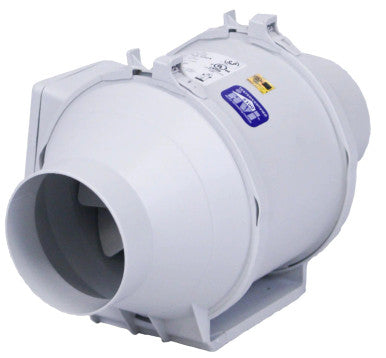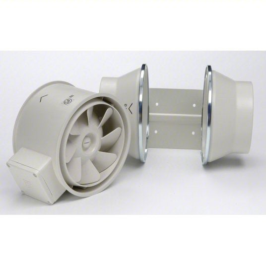 TD-MIXVENT have been designed with the professional contractor/engineer in mind. All models include a "removable body" feature that enables the motor-impeller assembly to be completely removed or replaced without the need to interfere with the attached ducting. These models incorporate a powerful mixed flow impeller and internal air vanes located at the discharge end of the fan housing. This impeller and guide vane combination provides a smooth laminar airflow which in turn minimizes turbulence and noise and generates excellent airflow to static pressure performance ratio.